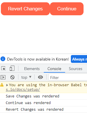 그러면 Save Changes버튼을 클릭하면, Continue가 다시 render되지 않았음을 확인할 수 있다.