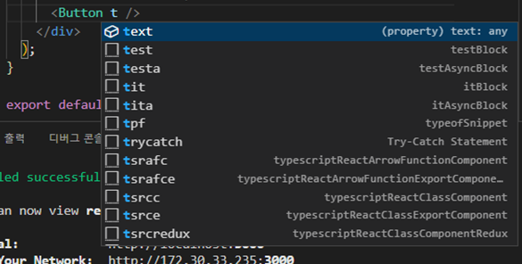 다음과 같이 t만 쳐도 어떤 prop을 가지고 오는지 알려주는데 이또한 장점 중 하나이다!