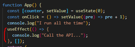 useEffect에는 component가 처음 render할때 실행되고, 다시 실행되지 않을 function을 넣어줄것이다.