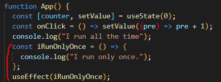 첫번째 argument는 한번만 실행하고 싶은 코드이다.