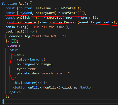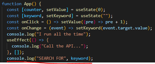 이렇게 배열안에 입력을 해 놓으면 keyword가 변화할때 코드를 실행할 것이라고 react에게 알려주는 것이다.