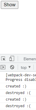 Show버튼을 클릭했을때에는 destroyed가 되었다!!