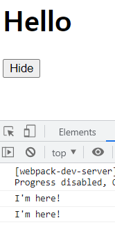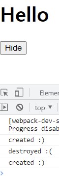 Hide버튼을 클릭했을때에는(Hello가 나올때)에는 created가 나오는데