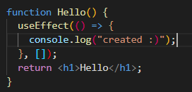 Hello component를 아래와 같이 구성하게 된다면, created되었을때 출력하게 된다