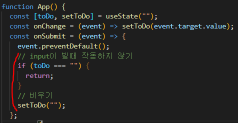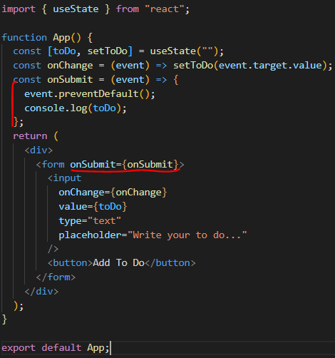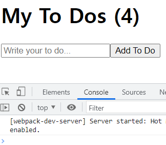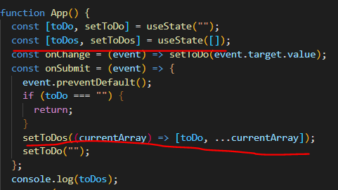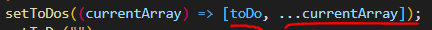 array를 직접적으로 수정하지않고, setToDos로 array에 element를 추가!