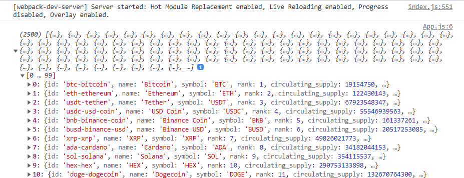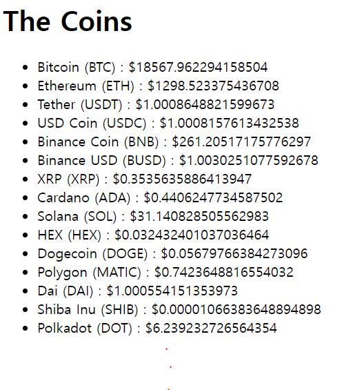 로딩메세지를 숨기고 코인들을 리스트로 보여주도록해보자!