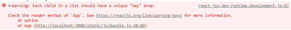근데 아래와 같이 key prop 에러가나는데 이는 option에 id 옵션을 더해주면 된다~!
