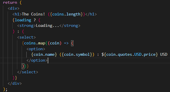 <h1>The Coins! {loading ? "" : `(${coins.length})`}</h1>