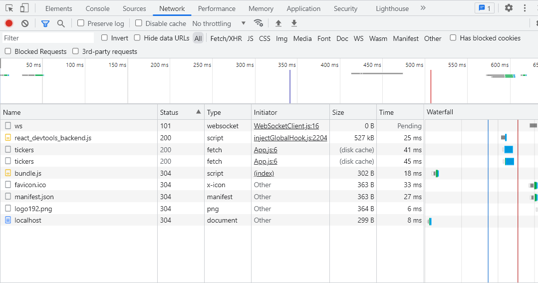 network창에서 어떤 부분을 보면 tickers를 request했다는 것을 확인할 수 있다.