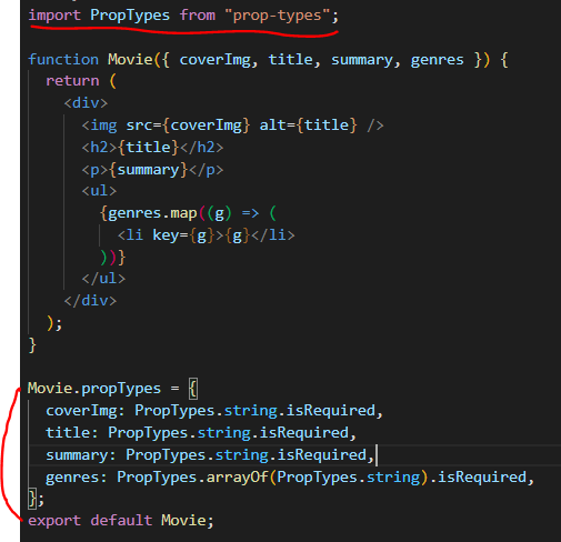 Movie컴포넌트의 Proptypes를 설정해보자.