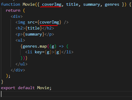 Movie.js 컴포넌트를 만들고, 각 항목들은 prop으로 받아보자~!