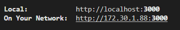 그러면 두개의 링크가 나오는데, 하나는 내 컴퓨터에서 하나는 와이파이내에서 사용할 수 있는 링크!