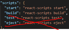 그리고 package.json의 scripts에 우리가 사용할 start, build만 남기고 다른것들은 다 지워버리자~!