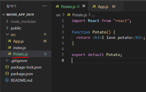 그럼 src에 Potato 컴포넌트를 만들어서
