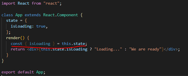 근데 this.state다 입력하기 힘드니 다음과 같이 바꿔주자~!