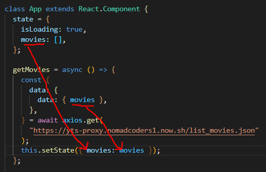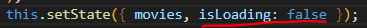 this.setState({ movies, isLoading: false });