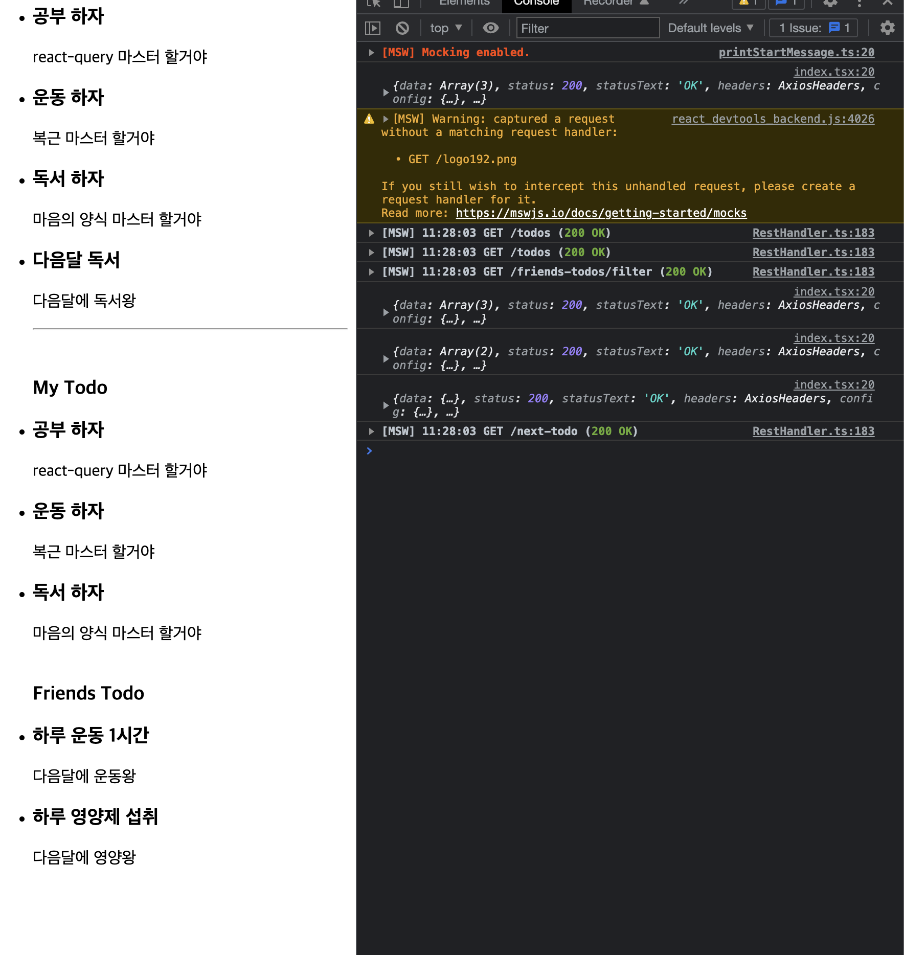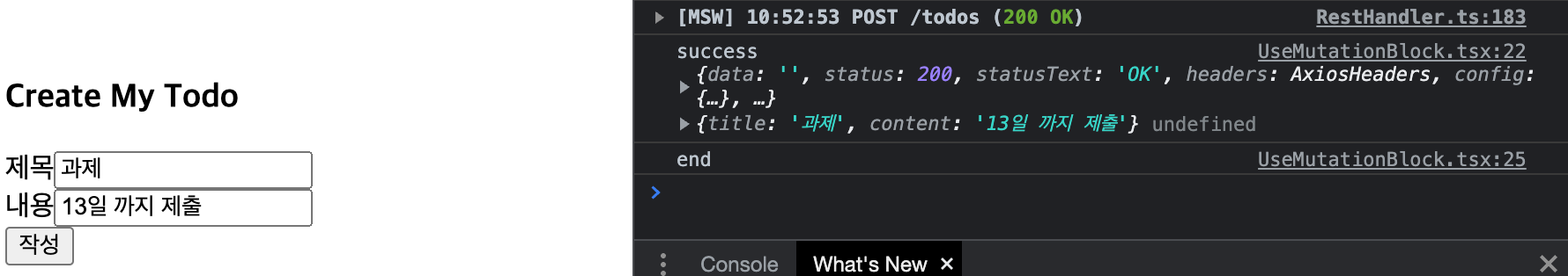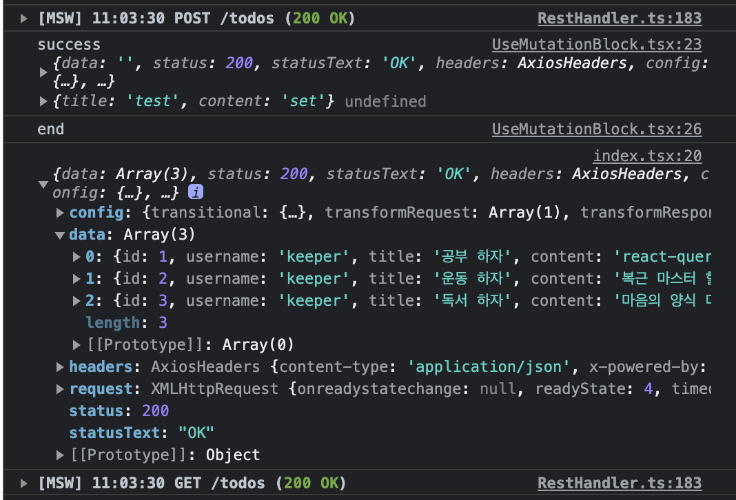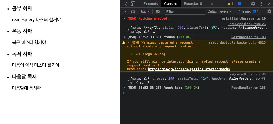 해당 실습을 해보면서 msw도 처음 세팅해서 사용해봤는데 간단하게 프로젝트를 구성하여 테스트해보기에 너무 편리했습니다!