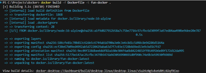 docker build -f Dockerfile -t my-first-docker .