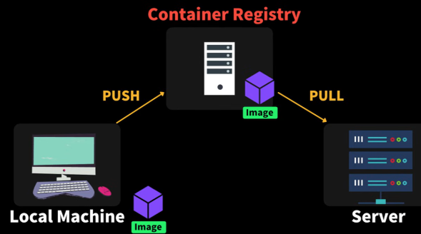 - 필요한 서버 또는 개발자가 컨테이너 레지스트리에서 이미지 다운로드 (PULL)