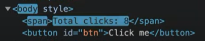 그런데 우리가 이전에 vanila.html 파일로 버튼을 클릭하면 body와 span이 업데이트하는 것을 확인할 수 있는데