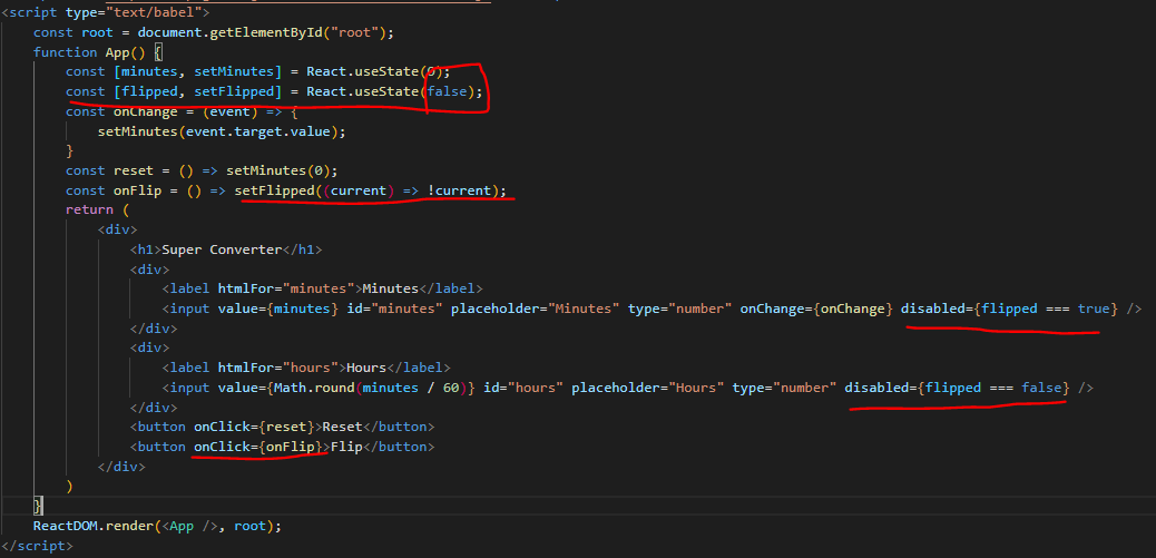 이렇게 코드를 재 구성하면 minutes -> hours, hours -> minutes 두 변환 모두 잘 작동이 된다.