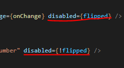 <input value={minutes} id="minutes" placeholder="Minutes" type="number" onChange={onChange} disabled={flipped === true} />